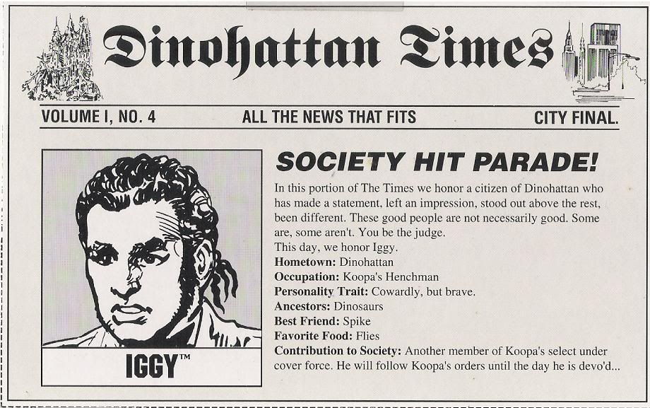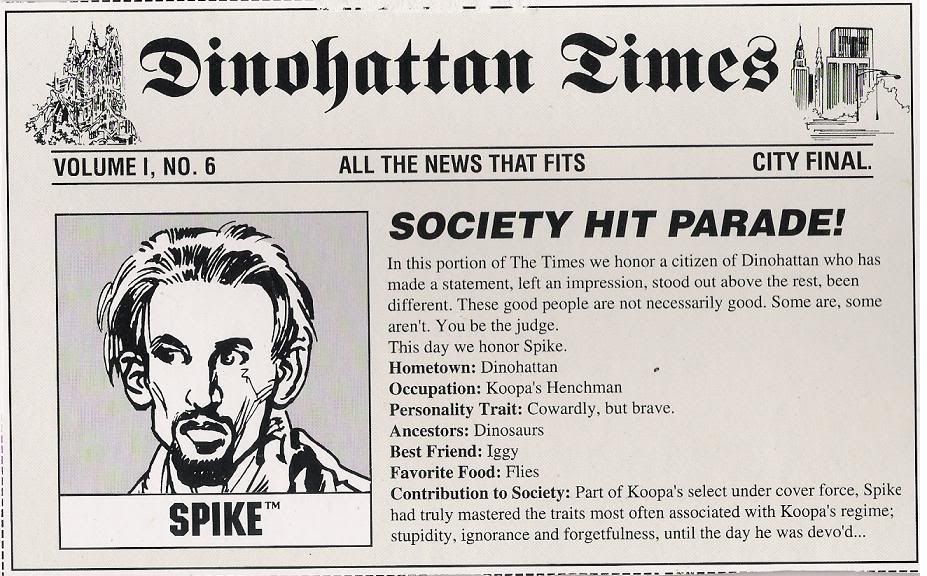 -a fake newspaper (dinohattan times) talking about the caracters (from the toys)